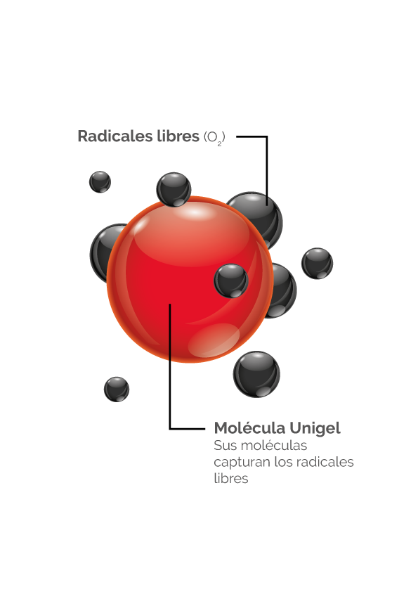 El tratamiento curativo del producto y los polímeros patentados que contiene es causado únicamente por su estructura química, que inmediatamente después de la aplicación establece las CONDICIONES IDEALES en la herida al eliminar los efectos negativos de los RADICALES LIBRES DE OXÍGENO (ROS) y una posible infección en la herida.